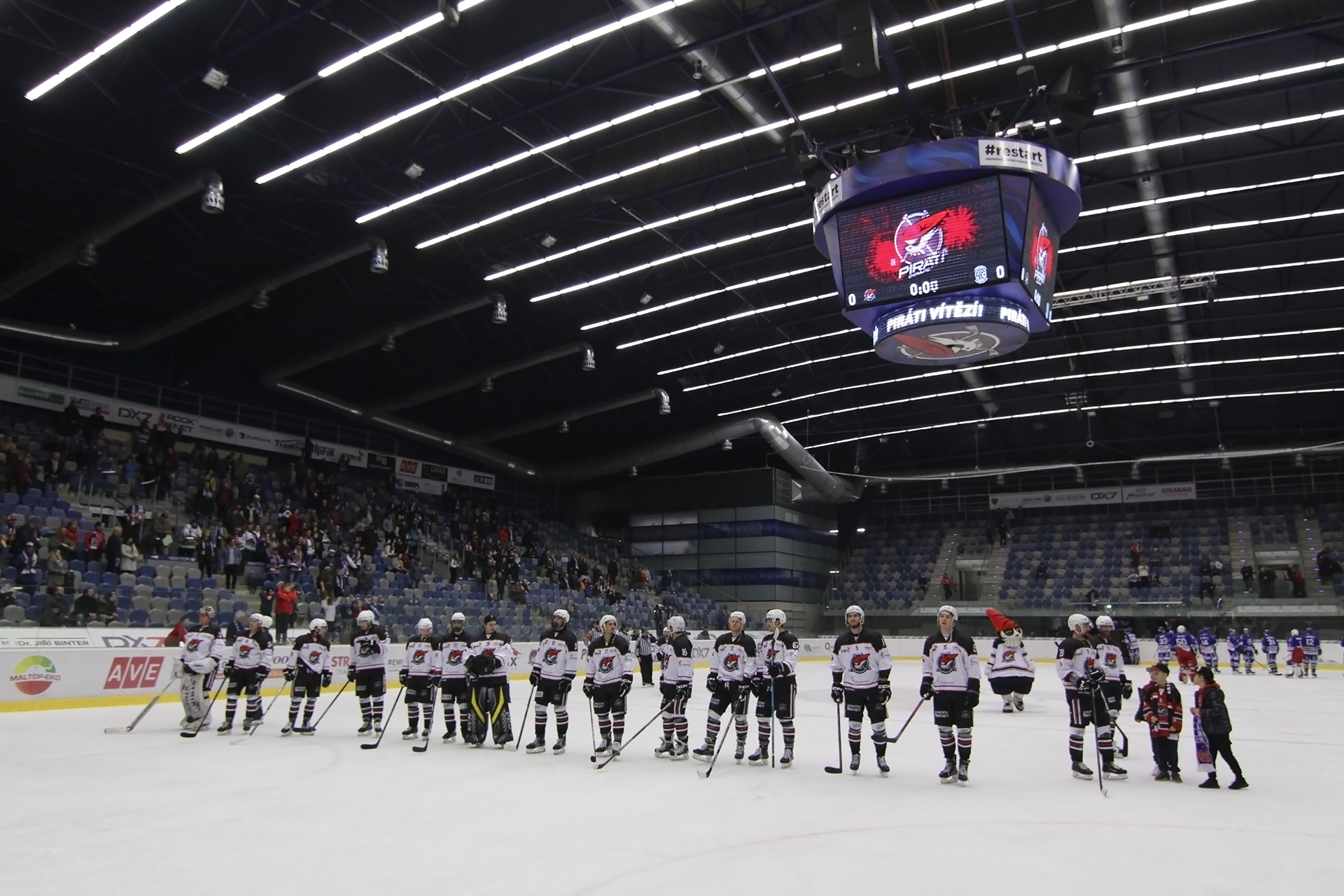 Piráti se radují z jednoho z osmi gólů v síti Hronova