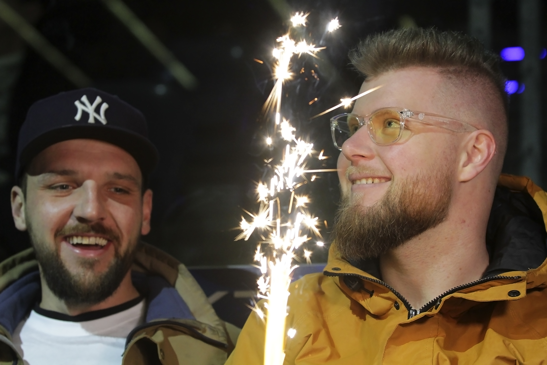 František Mála rozjíždí další chomutovskou akci, za ním se rozjíždí kupředu Vít Seemann
