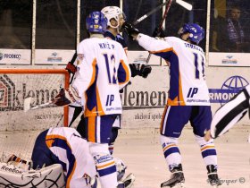 Na začátku třetí třetiny dohrávali domácí přesilovku a podařilo se jim jí využít. Zdeněk Skořepa našel najetého TOMÁŠE BRŇÁKA, jehož teč zaregistroval Volke až za brankovou čarou. Ve 49. minutě hosté využili přesilovku 5 na 3 a snížili PETREM HORČIČKOU na jednobrankový rozdíl. V následující přesilovce 5 na 4 mohl vyrovnat Tvrzník, ale puk mu k jeho smůle sjel z čepele hokejky. V 53. minutě mohl Seman zvýšit stav utkání, ale Volke mu to nedovolil. Poslední šanci na vyrovnání měli hosté dvě minuty před koncem, kdy byl vyloučen domácí Brňák. Hosté si vzali oddechový čas a odvolali v závěru i brankáře. K vyrovnání jim to ale nepomohlo. Domácí oslabení sehráli bravurně a uhájili tak své těsné vedení.