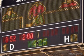LTMV úvodu utkání hosté naznačili, že přijeli do Chomutova hlavně bránit, což bylo od úvodních minut utkání znát. Domácí s tím měli značné problémy a nedokázali se prosadit. Do vedení se jim ale přeci jen podařilo jít ve 12. minutě, kdy si sjel mezi kruhy DAVID HAVÍŘ a nedal výborně chytajícímu Volkemu žádnou šanci. Po inkasované brance hosté krapet ožili, ke své smůle ale jen v přesilových hrách. Bohužel se jim vyrovnat nepodařilo.