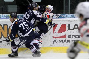 Od druhé poloviny první části však diváci viděli zcela jiný hokej. Hosté se dokonale chopili otěží utkání a nenechali nic náhodě. V rychlém brejku se ocitla první formace Vítkovic. Húževka přihrál Burgerovi, který kotouč jen tak letmo poslal na bránu. Kostúr sice kotouč zkrotil, toho se však zmocnil Ondrej Šedivý, který dokázal skórovat.