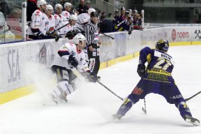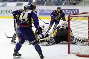 SUMTýmy se na ledě ještě ani neohřály a hosté se již museli bránit ve čtyřech, za hákování byl potrestán Drtil. Piráti ale téměř neohrozili branku Koutského. O chvilku později se blýskl brankář Kopřiva. Hosté na něj jeli sami ve dvou, ale domácí gólman zneškodnil Moskalovu střelu.