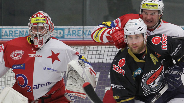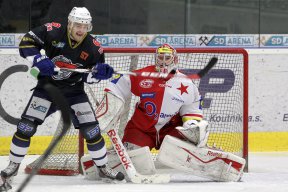 Pro domácího brankáře Kopřivu bylo důležité, aby i přes neaktivitu Slávistů udržel koncentraci, což při několika brejků hostujících hokejistů prokázal.
