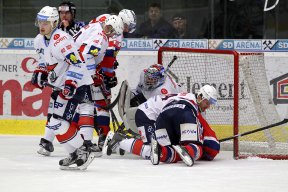Ve 36. minutě Tomáš Marcinko nedosáhl na puk a zbytečně najel do chomutovské jedničky. Slovenský útočník potrestán nebyl, ale Jiří Cetkovský dostal desetiminutový trest za nesportovní chování. Vteřinu před vypršením trestu Tomáše Kauta šli Piráti do dvoubrankového vedení. Krásná souhra tří útočníků začala u Michala Vondrky, který přihrál na Romana Červenku, jenž stál u pravé tyče Kristanovy branky. Třicetiletý útočník poslal kotouč ještě lépe postavenému Vladimíru Růžičkovi, jenž už s dorážkou do prázdného prostoru u levé tyče neměl problém - 3:1. V závěru třetiny domácí hodně tlačili a dostali se do tří velkých šancí. Dorážka Romana Červenky skončila na tyči, Marku Tomicovi se u levé tyče nepodařilo přehodit beton pardubického brankáře a krátce na to Peter Ölvecký nastřelil břevno.