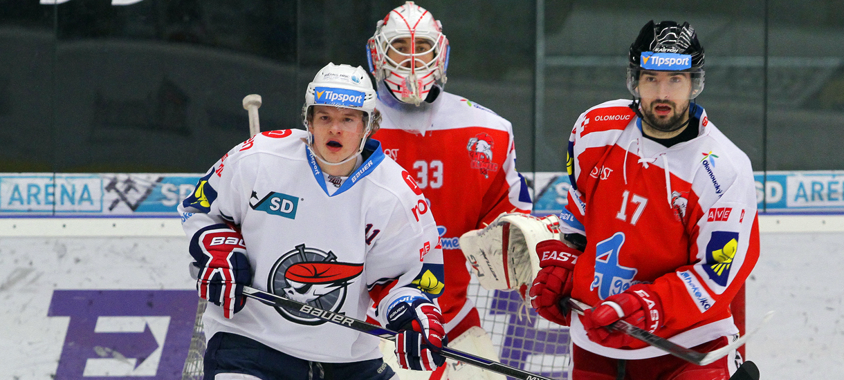 OLOOba celky začaly utkání aktivně a dravě s velkým tlakem do brány. V šesté minutě stál Marek Račuk před odkrytou bránou, ale kotouč se od olomouckého gólmana odrazil tak rychle, že ho chomutovský forvard nestihl doklepnout do sítě, a tak první větší šance skončila jen na mantinelu. Krátce nato domácí ubránili oslabení a zneškodnili všechny akce, které si Mora vytvořila. Následně si i Piráti díky dobrému tlaku v předbrankovém prostoru vyzkoušeli početní výhodu, která se domácím moc nepovedla.
