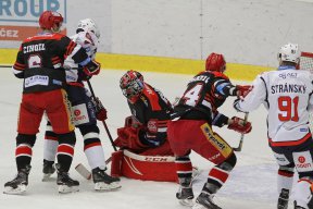 Piráti dvě oslabení ubránili, ve třetím už kapitulovali po ráně Filipa Pavlíka z prostoru mezi modrou a vrcholy kruhů – 2:3. Tento gól nakonec poslal duel do prodloužení, které po necelé minutě ukončil hostující Lukáš Cingel střelou z mezikruží po přihrávce Radovana Pavlíka – 3:4. Svěřenci Vladimíra Růžičky tak první letošní extraligové prodloužení prohráli.