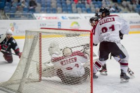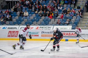 Začátek třetí třetiny Piráti začali v oslabení po faulu Jakuba Váchala, ale žádné ohrožení branky z něj neplynulo. Chomutovští mohli skóre navýšit díky akci Lukáše Stehlíka, ale s jeho zakončením mezi betony si Vojtěch Nečas poradil. Hosté se chvilku mohli radovat z vyrovnání v minutě čtyřiapadesáté. Z pravé strany vystřelil Adam Mácha, jehož střelu Richard Běhula vyrazil před sebe. Autor střely se pak ještě dostal k dorážce, ale tou trefil do rukavice ležícího Otu Theimera. Rozhodčí pod dlouhé debatě ale nakonec gól neuznali a tak Piráti i nadále drželi nejtěsnější možný náskok.