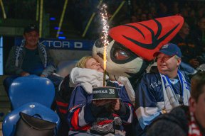 I když se situace zdála jako snadný gól, radost domácí haly zhatil právě brankář hostí. Sudí si však všimli, že si u toho pomohl podražením a nabídli Pirátům dvojnásobnou početní výhodu. V čase 12:25 Tadeáš Svoboda vykutálenou zadovkou zpoza brány našel Viktora Hübla. Ten využil momentu překvapení a puk předložil ke střele Dominiku Sklenářovi, který propálil z pravého kruhu Jana Kavana a dočkal se tak zasloužené satisfakce – 1:0.