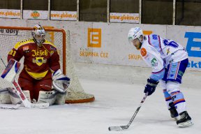 JIHHned od úvodních minut domácí ukázali, kdo je na ledě pánem a během několika úvodních minut musel ukázat svůj um debutant v jihlavské brance Vajner. Dvakrát byl blízko vstřelení úvodní branky Fábry, ale nejdřív jeho pokus zastavila tyč a druhý z mezikruží vyrazil hostující brankář. V deváté minutě se na něho sám rozjel Michal Jeslínek, ale dobře provedený blafák zakončil domácí forvard pouze do tyče. O chvíli později dostali domácí možnost zahrát si první početní výhodu. Po 24 vteřinách se potrestaný Kotlík vracel zpátky na střídačku, jelikož se opakovaným pokusem prosadil Jaroslav Hašek - 1:0. Teprve až v desáté minutě si pořádně osahal kotouč Jan Lundell, když zlikvidoval pokusy Bakuse i Ficence. Ale jednalo se spíš o světlou hostující výjimku, jelikož se většinu času hrálo před Vajnerem. Pět minut před první sirénou se radovali bílomodří podruhé, to když se důrazem v brankovišti prosadil Martin Malát - 2:0. O minutu později mohlo být pro Duklu ještě hůř, ale Jeslínkův i Skořepův pokus šel jen těsně mimo hostující branky.