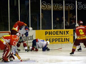 C h o m u t o v - Po dvou porážkách před domácím publikem si dnes chtěli chomutovští hráči napravit reputaci. A podařilo se jim to na výbornou, ambiciózní Hradec Králové, který před dnešním zápasem ztrácel na domácí jen dva body, si odváží vysokou prohru. Skóre otevřel v 8. minutě nadaný junior Veverka. V 16. minutě přidal druhý gól obránce Hájek a na konci druhé třetiny zvýšil na tříbrankový rozdíl Polodna. Ve 48. minutě zapadla Pulpánova střela švihem od modré až za záda brankáře Hyláka a Hradec již věděl, že body si ze severu Čech odvážet nebude. Pět minut před koncem uzavřel dnešní představení útočník Boušek, který nastoupil po delší pauze, zaviněné zraněním ramene.