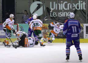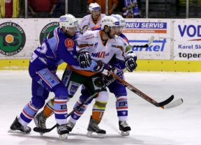 Třetí třetina přinesla dramatický boj se spoustou branek. Ve 45. minutě nejprve zvýšil domácí náskok Martin Heinisch tvrdou střelou po ledě, poté však zahájili velký hon za vyrovnáním hráči Chomutova. A byli úspěšní. V 51. minutě se Marko Toivonen trefil přesně pod horní tyč, o šest minut později pak Jaroslav Hašek usměrnil za Horčičkova záda Bombicovu přihrávku zpoza branky - 3:3.