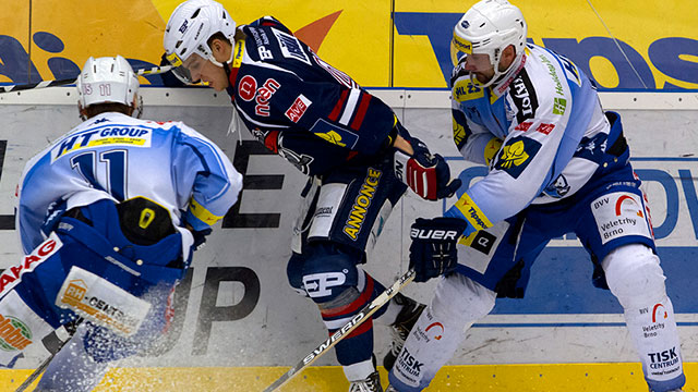 Třetí třetina nezačala pro severočechy zrovna slibně. Již v 42. minutě se přesně trefil znovu HYNEK ZOHORNA a byla to opět remíza. Pirátům začaly krušné časy. Po vyloučení Hromase a následně Pulpána mělo Brno k dispozici téměř dvouminutovou přesilovou hru 5 na 3. Chomutovská tvrz však odolala a domácí se mohli znovu dostat do vedení. To se také stalo. Hostující Róbert Petrovický si musel sednout na trestnou za sekání a Krušnohorci měl dobrou příležitost. A s přesilovkou naložili výborně. Martin Rýgl si připsal už druhou asistenci, když od modré vystřelil na Faltera a YORICK TREILLE ztečnul puk do branky. Faltrovi dnes náhlé změny směrů kotouče dělaly velké problémy. Hostům docházel čas a trenéři sáhli po powerplay. Nejdříve jen těsně minul prázdnou branku Jurčina a následně jen pár vtěřin před uplynutím měla Kometa obrovskou šanci, ale puk do poloodkryté klece nezaletěl. Piráti tak po sérii neúspěchů získali cenné tři body.