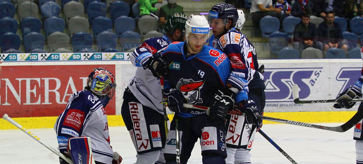 V osmnácté minutě byl před Bartošákem velký závar, během něhož zkoušel Jakub Sklenář zakončit mezi betony hostujícího gólmana. Mezírku mezi nohama však netrefil. Několik vteřin před koncem první třetiny to v SD ARÉNĚ zašumělo, když dělovka Dávida Skokana z pravého kruhu vítkovickému brankáři vypadla. K dorážce se ale nikdo z domácích nedostal.
