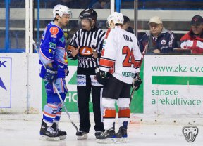 C h o m u t o v - V první třetině se diváci dočkali vedoucí branky domácích už ve 4. minutě po střele Haška. Poté hráli hosté jakoby zaskočeni, ale po trestu domácí střídačky a své početní výhodě převzali pomalu otěže první třetiny do svých rukou. Své šance však nevyužili a když ani domácí Tauš netrefil prázdnou hostující branku, skončila první třetina 1:0. Ve druhé třetině se povedlo domácím využít dvounásobnou početní výhodu ve 24. minutě Bombicem a ve 33. minutě zvýšil na 3:0 Petr Domin. Od dalších gólů uchránil hosty vynikající Jakub Čech v jejich brance. Hosté se neprosadili ani ve dvou nabídnutých početních výhodách. Ve třetí třetině se hosté snažili o zkorigování výsledku, proti však byli domácí hokejisté. Osm vteřin před koncem se však přece jenom hostům povedlo vstřelit branku Říčkou a dokonale tak pokazili domácímu gólmanovi radost z vychytané nuly.