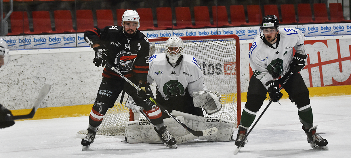 příbramští hráči mohli dostat do vedení, ale hostující brankář vyrazil puk mezi