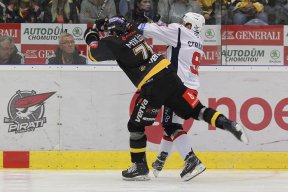 Parádní akce poslala do vedení Piráty už sedmatřicet vteřin po prvním buly třetího dějství. To se protáhl po pravé straně do útoku Pavel Klhůfek a křižnou nahrávkou do brankoviště našel hokejku Masi Marjamäkiho, jenž se nemýlil – 1:0. O jedenáct vteřin později se ROCKNET ARÉNOU rozlehlo cinknutí tyče po bombě Ronalda Knota z pravého kruhu. Ve čtyřicáté třetí minutě se k odraženému puku dostal Ivan Huml. Pirát s číslem 71 na zádech několikrát dorážel, ale Jaroslav Janus uhájil branku. Vyrovnáno bylo ve čtyřicáté šesté minutě, kdy puk z pravé strany téměř z nulového úhlu trefil o masku Justina Peterse do branky Michal Trávníček – 1:1.