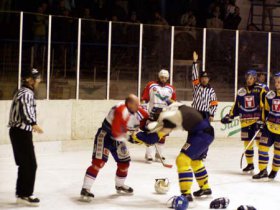 PISDo druhé části vstoupili domácí hráči jako vyměnění. Po nevýrazné hře ze třetiny první, přišpendlili soupeře v jeho obranném pásmu a ve 23.minutě dosáhli kýženého snížení stavu na 1:2 z hole Stanislava Mikšovice, který si vybral prostor pod horní tyčkou Masalskisovy branky. Nápor Chomutova přibrzdilo až oslabení ze 25.minuty, ve kterém ale domácí odvedli výbornou práci a sami několikrát jihočeskou svatyni nebezpečně atakovali. Ve 31.minutě se ve veliké šanci objevil Martenek, po přihrávce Ibla však z velkého úhlu rozvlnil jen boční síťku. Po shlédnutí boxerské vložky v podání dua Nosek - Neckář a vyloučení obou aktérů do konce utkání, se mohli všichni opět naplno věnovat hokeji. Při přesilovce domácího týmu ve 37.minutě si chomutovští mezi sebou puk párkrát vyměnili, až se ke tvrdé střele z pravého křídla dostal Petr Jíra a vyrovnal na 2:2. Krátce poté si Chomutov svou nátlakovou hrou vynutil dvojnásobnou přesilovku a odehrál ji bezchybně. Krásnou akci před Masalskisem zakončil Ladislav Boušek po přihrávce Koláčka a otočil tak vývoj utkání na 3:2. V poslední minutě prostřední třetiny přehlédli rozhodčí asi půlminutovou hru Písku v šesti hráčích v poli, ale již zaregistrovali podražení Malinského, který za tento prohřešek usedl za katr. Ve druhé části Chomutov svého soupeře jasně předčil ve všech směrech.