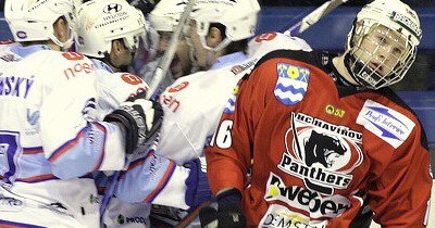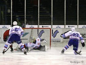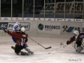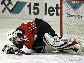 Poslední třetina patřila opět domácím. Hned na začátku hrál Chomutov přesilovou hru, kterou dokázal využít. Michal Jeslínek nahodil vysokou střelou kotouč na bránu a Petr Domin šikovnou tečí usměrnil kotouč za Čechova záda - 5:0. Brankostroj Chomutova však pořád nekončil. Ve vlastním oslabení ujel opět Petr Domin a leč tísněný obráncem, dokázal kotouč protlačit pod Čechem do brány - 6:0. O pár chvil později se stav měnil posedmé. Opět v přesilové hře dostal perfektně načasovanou přihrávku před takřka prázdnou bránu junior Jakub Hofmeister a vstřelil tak svojí první branku za Chomutov. To bylo na hostujícího gólmana příliš a nechal se vystřídat Gleichem. Zároveň odjel na střídačku i prochladlý Lukáš Mensator, který přenechal své místo Janu Kaššákovi. Závěr utkání se nesl v bojovném tempu a přibylo pár vyloučených na obou stranách. Skóre se však již neměnilo, a tak Chomutov porazil Pantery z Havířova vysoko 7:0.