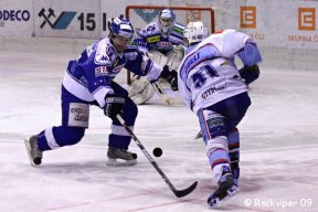 Třetí třetina byla v moci Chomutova. Již od úvodního buly se hrnuli před Hyláka, ale ten všechny střely pokryl. Ve 45. minutě byl hostům pískán ofsajd, ale Vondráček přesto vypálil střelu na Hanuljaka a ten, jelikož nebyl připraven, schytal střelu do oblasti krku. S bolestivou grimasou však nakonec vstal a pokračoval ve hře. Hra se uklidnila a nikdo z hráčů nechtěl udělat zbytečnou individuální chybu. V 53. minutě se veliké příležitosti ocitl Petr Jíra, ale Hylák vytasil skvělý zákrok. Vteřinu před koncem třetí třetiny ujel Skořepa s Hlinkou proti jednou obránci, druhý jmenovaný však po přihrávce nezamířil přesně a tak byl stav po třech třetinách stále 1:1.