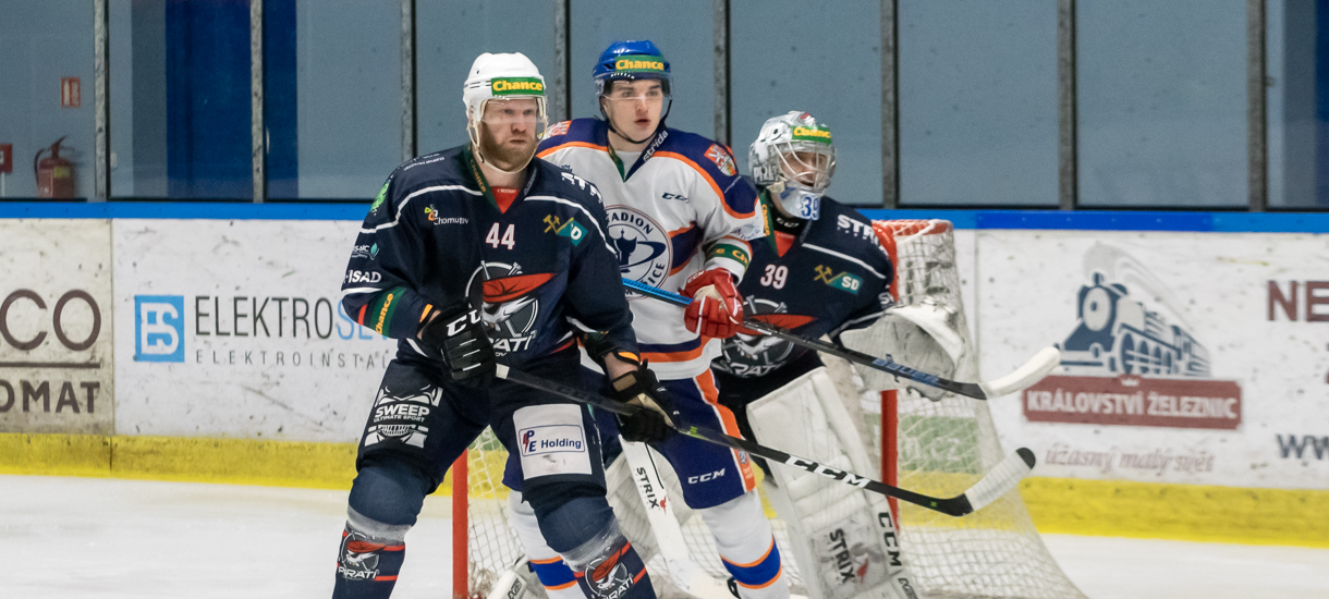Za pětadvacet vteřin to s Piráty vypadalo ještě veseleji, protože Jan Svoboda dostal čas i prostor k zakončení z mezikruží a byl úspěšný – 0:2. Ve druhé polovině třetiny Chomutovští dvakrát faulovali a Stadion hned první přesilovku ve třinácté minutě využil zásluhou pohotové teče Martina Kadlece na brankovišti – 1:2.