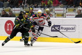 Pirátům také pomáhal svými zákroky Růžička. Během oslabení dvakrát vychytal nebezpečně střílejícího Hovorku. Na druhé straně se vytáhl zákrokem Závorka, když vychytal osamoceného Bomersbacka. Na druhé straně se opět blýskl Růžička, který skvěle zasáhl proti střele Zaťoviče. Dalšího gólu jsme se tedy i díky zákrokům brankářů nedočkali a Karlovarští odcházeli do šaten s těsným vedením.