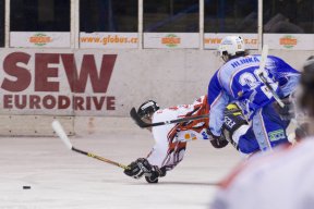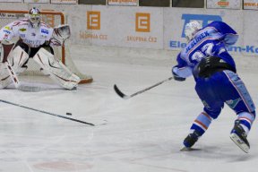 Úvod třetího dějství vyšel bílomodrým opět famózně a situaci dva na jednoho vyřešil přesnou střelou pod vyrážečku Šrámka Zdeněk Skořepa - 3:0. O čtyřicet vteřin později se poprvé v zápase radovali i hosté. Odražený kotouč dopravil do prázdné branky Jan Šeda a opět to bylo pouze o dvě branky - 3:1. O chvilku později mohli hosté přidat kontaktní branku, ale vyloučení Míky potrestat nedokázali. Následovala tak početní výhoda domácích a blízko k další brance měl Pulpán, ale trefil jen Šrámka do hrudi. Deset minut před koncem utkání dokončil zápletku pro závěr utkání Lukáš Daňo, který hned po buly propálil Lundella - 3:2. Hosty kontaktní branka nakopla a vytrvale zásobovali Lundella pokusy snad ze všech pozic, ale domácí brankář si s nimi poradil. Dvě a půl minuty před koncem utkání byl za podražení vyloučen Toivonen a chrudimští si ještě celou situaci vylepšili hrou bez brankáře. Situace šesti proti čtyřem však tížené vyrovnání nepřinesla a naopak jen těsně hostující prázdnou branku minul Mikšovic. Když minutu po zákroku Toivonena zamířil na trestnou i hostující Valko bylo po šancí hostí.