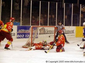 HKRV úvodu utkání měli puk častěji na hokejkách právě Severočeši, kteří se snažili o rychlé vstřelení branky, která by je uklidnila. Jejich tlaku se hosté bránili jen za cenu zakázaných uvolnění. První vážnější šanci však měli Hradečtí na začátku páté minuty. Novic v dresu Východočechů Diviš se prodral až před Horčičku, na něhož si blafákem nepřišel. Uhodilo však na druhé straně. Domácí získali pásmo a ještě v téže páté minutě našel Radek Šíp zpoza branky Romana Pražáka, jenž zacílil přesně – 1:0. Za necelých 120 sekund bylo na Duhovém stadionu ještě veseleji. Stanislav Mikšovic napřáhl na modré a procedil kotouč skrz všechny překážky včetně Hylákovy výstroje – 2:0. Poté se hrál opatrný hokej a hosté se jen pomalu zvedali po těžkém KO. Náznak útočné aktivity přišel v polovině třetiny, kdy Pavel Suchý v úniku 2 na 1 jen vyprášil Horčičkův beton. Další zajímavé momenty přišly v závěru úvodního dějství. Varování v podobě tyče po Táborského střele z konce 19.minuty Chomutovští nebrali zřejmě příliš vážně, a tak přišel trest. Při hře 3 na 3 se sám na Horčičku řítil Martinec, ale nedal. Za ním však dojížděl Petr Suchý, pro něhož nebylo problémem dorazit opuštěný kotouč do odkryté svatyně domácích – 2:1. Několik okamžiků po snížení mohl vrátit jistotu na hole Chomutovských Řezníček. Jeho ránu však zastavilo břevno.