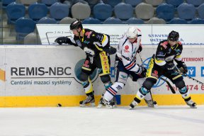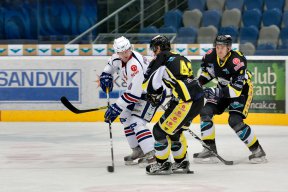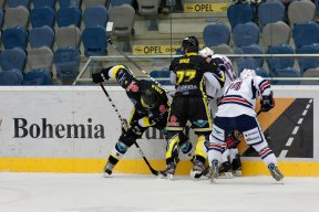 KADOd úvodní bule se hrál velice vyrovnaný a opatrný hokej. Ani jeden z týmů nechtěl udělat chybu a bojovalo se doslova o každý kousek ledu. Na zajímavější šanci se čekalo až do sedmé minuty, kdy domácí dostali příležitost první početní výhody. Během této přesilovky si sice dokázali vytvořit tlak, ovšem branku vsítit už ne. Ve dvanácté minutě si poprvé zahráli přesilovou hru také hoste. Ani oni ji však neproměnili a měli štěstí, že v početní výhodě dokonce neinkasovali. Marek Sikora se totiž ve vlastním oslabení dostal ve středním pásmu ke kotouči, poté objel hostující obránce, ale překonat brankáře Řehoře se mu nepovedlo a následná dorážka Ondřeje byla sražena nad bránu. Největší šance první třetiny byla k vidění v šestnácté minutě. To se až před Hanuljaka proháčkoval Jiří Charousek, ale domácí brankář skvělým zákrokem jeho blafák zneškodnil Nic jiného se už v prvním dějství nestalo a branky se tedy fanoušci nedočkali.