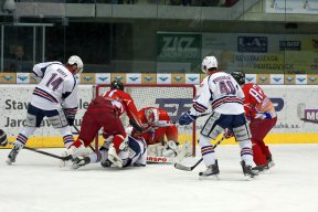 OLOÚvod utkání patřil aktivním Pirátům, kteří si vypracovali vyloženou šanci už ve čtvrté minutě, kdy dostal mezi kruhy ideální pas Lukáš Pulpán, ale nezamířil přesně. Následnou dorážku Milana Procházky potom bravurně zlikvidoval Žigárdy. V osmé minutě pohotově tečoval kotouč před olomouckým brankářem Hafenrichter, ale Žigárdy zasáhl výborně lapačkou. Až ve třinácté minutě si také poprvé šáhl na kotouč Tomáš Duba, na kterého ale Haluza nevyzrál. V šestnácté minutě se slušně zaplněný chomutovský stadion mohl poprvé radovat z gólu. Marek Sikora dostal na křídle trochu více prostoru a parádní střelou pod vyrážečku propálil Žigárdyho - 1:0. Chvíli na to se dostal Pekr do střelecké pozice a trefil břevno. V posledních vteřinách první dvacetiminutovky byl blízko vyrovnání Šlahař, ale Tomáš Duba v těžké pozici udržel kotouč před brankovou čárou.