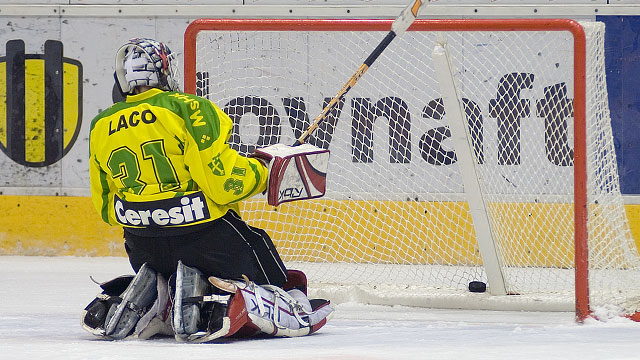 CHMPrvní třetina měla vysoké tempo. Chomutovští si připravili hned několik brankových příležitostí, ale do klece Laca doputovala pouze jedna. Za to opravdu překrásná akce dvojice Hřebejk – Jíra. Na jeden dotek si dvakrát vyměnili kotouč a na Petra Jíru už zívala pouze prázdná branka. Zbytek třetiny trval tlak Chomutova, branka z toho však nepadla. Miroslav Hanuljak v chomutovské brance také předvedl několik důležitých zákroků a udržel tak po první třetině stav 1:0.