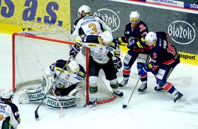 Druhá přestávka brankové hody utnula, nelze však říci, že by hráči zbytek utkání vypustili. Stále byla k vidění řada střeleckých pokusů, Pohl se Svobodou dokonce za vzájemnou strkanici obdrželi menší tresty. Hosté ve 47. minutě dostali výhodu přesilové hry, faul Hrušky však potrestat nedokázali. Více vzruchu před brankami mělo přijít až o chvíli později. V 52. minutě nevyužil Micka šikovné Vlachovy nahrávky před branku a trefil pouze brankářův beton, červené světlo se tak přece jen rozsvítilo na druhé straně za Závorkou. Vyrovnávací branku na 4:4 po závaru vsítil Ondřej Kaše. Vrátit vedení mohl Energii v zápase velmi aktivní kapitán Zaťovič, tentokrát však ze vzájemného minisouboje vítězně vyšel gólman Růžička. Hosté v závěru ještě přečkali vyloučení Mrázka a šlo se na prodloužení.