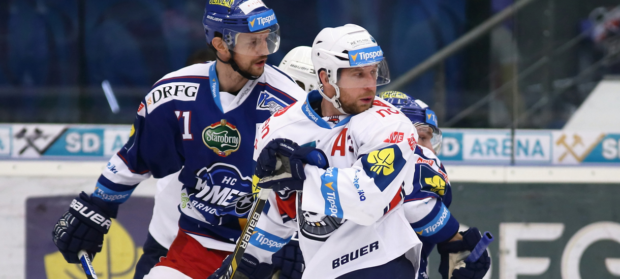 CHMNa prvních dvacet minut nastoupili Brňané ve slavnostních retrodresech, ve kterých se domácím opravdu dařilo. Ze začátku sice museli svěřenci hlavního kouče Libora Zábranského zvládnout dobrý nástup Pirátů, po dobrých šancích, které likvidoval skvělý Vejmelka však udeřili Brňané. Nejprve se v desáté minutě dostal do šance po Kvapilově přihrávce Leoš Čermák, který z pravého kruhu dělovkou prostřelil Laca v chomutovské bráně. Pět minut před koncem prvního dějství pak gólman Pirátů rozehrál přímo na hůl Vojtěcha Němce, který nic neuspěchal, počkal na najíždějícího Martina Zaťoviče a v DRFG Areně podruhé v zápase vypukla modrobílá radost.