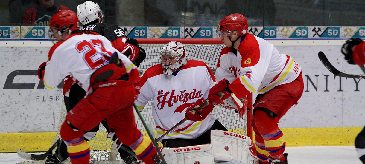 HVPPiráti do zápasu s pražskou Hvězdou dobře nastoupili, ale po nevyužité šanci Petra Freiberga se skóre měnilo na druhé straně. V pozici mezi kruhy vystřelil hostující Marek Šonský a jeho střelu šikovnou těčí usměrnil za Hanuljakova záda Tomáš Nacházel a bylo to 0:1. Od té doby byl hostující celek lepším týmem na hřišti a jen díky několika dobrým zákrokům domácího brankáře nebylo skóre vyšší. V samém závěru první třetiny se skóre měnilo podruhé. Při hře čtyři na čtyři ujel hostující Jan Klečka a svižnou ranou nad rameno Hanuljaka zvýšil vedení hostů na 0:2.
