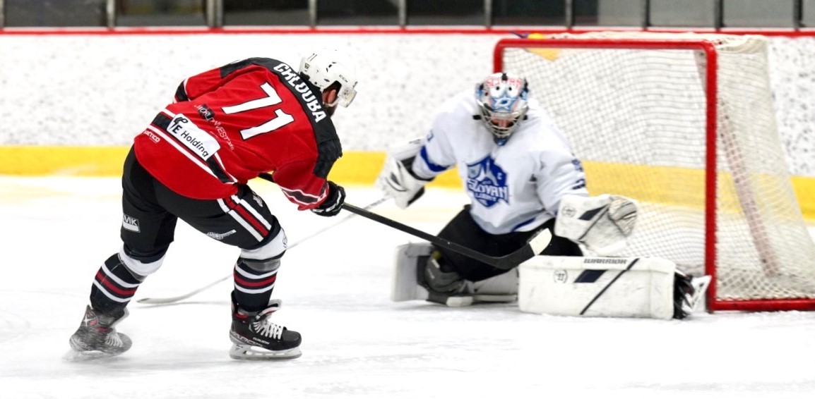 CHMHrála se teprve třetí minuta a Jaroslav Kůs s Romanem Chloubou ujeli při vlastním oslabení do přečíslení. Přihrávka zleva zamířila na zadní tyčku, odkud se navrátilec z Děčína prosadil a posunul se do čela střelců soutěže - 0:1. V jedenácté minutě se mezi kruhy nacházel Adam Szakal, jenž přesně vypálil nad Hanuljakovu lapačku - 1:1. Přesně o tři minuty později přihrával Jaroslav Kůs přes brankoviště na zadní tyčku, odkud v dalším oslabení Filip Döring poslal černou gumu do odkryté klece - 1:2.
