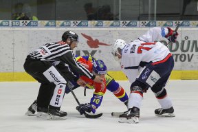 Bleskovou souhru předvedli Piráti ve 43. minutě. Pavel Klhůfek vyhrál buly na Petra Koblasu, který přesnou ranou zkompletoval hattrick – 5:2. Ve čtyřicáté šesté minutě pálil při přesilovce z pravého kruhu Martin Beránek. Dominik Pavlát zakročil ramenem a následná dorážka Romana Přikryla nebyla úspěšná. V 51. minutě snížil na rozdíl dvou branek David Gilbert, který trpělivě čekal u pravé tyče na přihrávku zleva od Martina Nováka a stanovil skóre na 5:3.