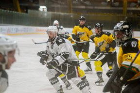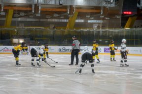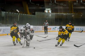 CHMNa úvodní branku zápasu čekaly zhruba tři stovky diváků do deváté minuty, kdy se před brankou ocitl Dominik Sklenář a mířil přesně – 0:1. Chvíli poté se do gólové šance dostal v úniku Jiří Fronk, ale brankář domácích byl pozorný. V čase 11:09 se Baník dostal do přečíslení, v němž se Štěpán Csamangó prosadil bekhendovým blafákem – 1:1.