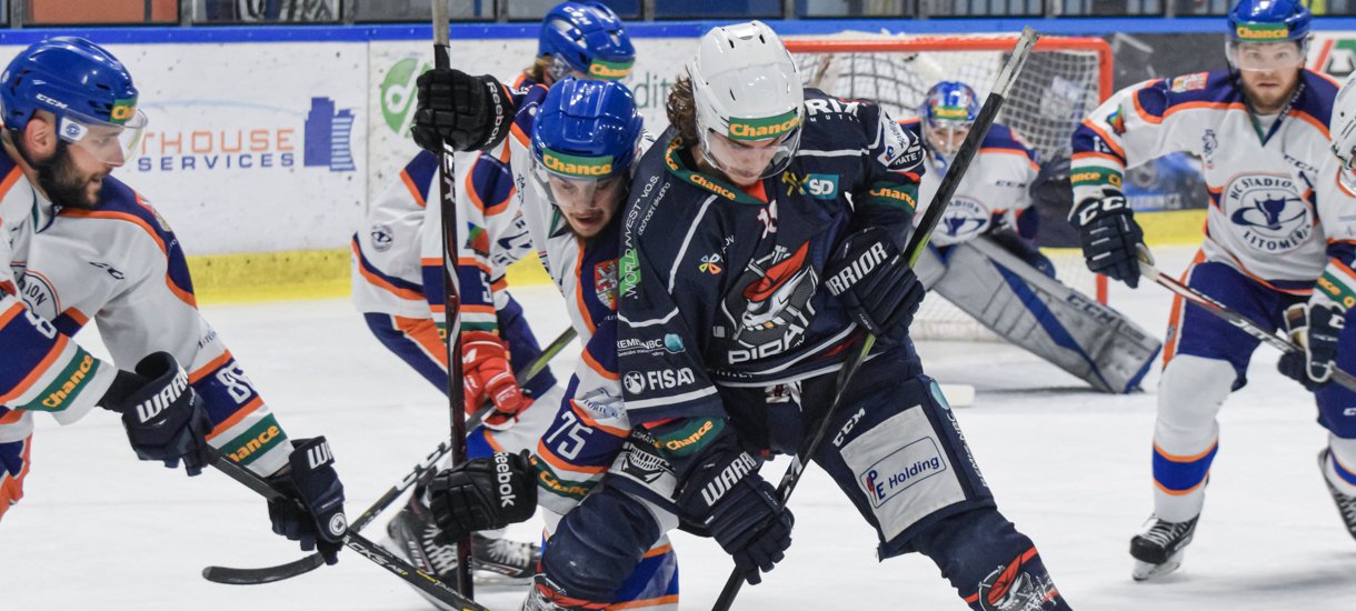 Chvíli poté ujížděli Litoměřičtí dva na jednoho, ale Korkiakoski, který vzal zodpovědnost na sebe, podruhé Pavláta nepřekonal. Ve druhé polovině třetiny ve hře čtyři na čtyři vyprášil Marcel zblízka Pavlátovy betony, na druhé straně v 17. minutě snížil Nicolas Hlava ranou z pravého kruhu do bližší šibenice – 2:1. Před pauzou hráli Piráti dvě přesilovky po sobě, které se na pět vteřin prolnuly. Klímovu dělovku z levého kruhu zastavil parádně betonem Beran, v oslabení pak ujel Korkiakoski, jenže bekhendem poslal puk do ochranné sítě.