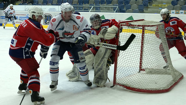 Ani ve druhé třetině si Chomutov nevedl špatně, první branka však vzešla z rebelské hole RADIMA OSTRČILA, který se svým pomalým nahozením před domácího Řehoře nečekaně trefil přesně do horního růžku. Dalo by se říct, že toto byl pro Piráty trest za nevyužité šance, navíc inkasovali v oslabení 4 na 3. Na to však domácí ještě před koncem druhého dějství našli svou odpověď. Od modré tentokrát na druhé straně z protiútoku střílel ŠTĚPÁN HŘEBEJK a hrálo se znovu od nuly. Puk nejdříve trefil levou tyč branky hostů a poté se odrazil za brankovou čáru. Druhá třetina tedy nějakou větší změnu nepřinesla.