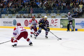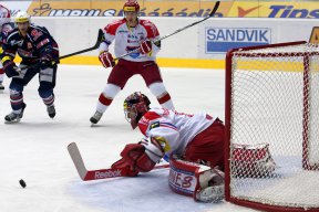 CEBPrvní třetina přinesla oboustranně opatrný hokej a nenabídla moc vyložených brankových příležitostí. První příležitost měli domácí Piráti v přesilové hře při vyloučení hostujícího Rudolfa Červeného. Piráti sehráli přesilovku celkem dobře, ale Kantora v brance Mountfieldu se jim překonat nepodařilo.