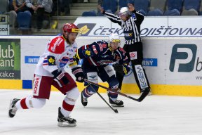 Závěr první třetiny hostům vůbec nevyšel, když se během posledních dvou minut nechali vyloučit celkem tři jejich hráči. Konkrétně Kolarz, Marek a Ptáček. V následné přesilovce 5 na 3 měl na holi branku domácí Zálešák, ale Kantor byl proti.