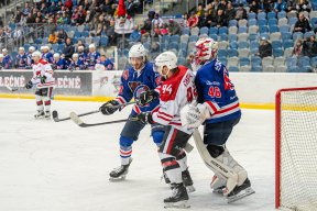 První branka se nakonec slavila až necelou půl minutu před první přestávkou, když Lukeš přesunul puk na Hübla, který přihrál mezi kruhy Tadeáši Svobodovi a ten Petráska prostřelil – 1:0.
