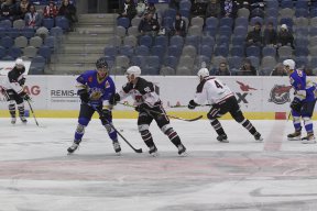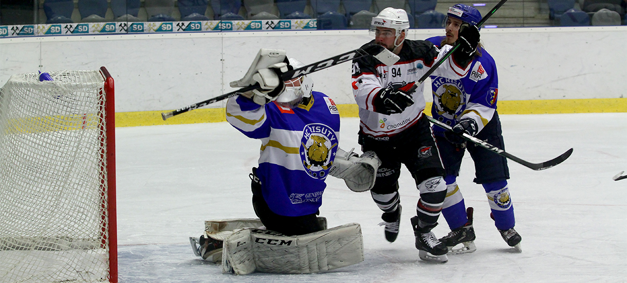RISHostující celek začal hodně aktivně a do dvou šancí v první minutě se dostal Petr Patyk, který nejdříve bekhendem zakončoval do betonů brankáře. Následně v předbrankovém prostoru zakončoval nad. Vzápětí se poprvé v chomutovském dresu v letošní sezoně mohl prosadit Veselý, který byl sám před brankou. Pánka ale nezvládl prostřelit.