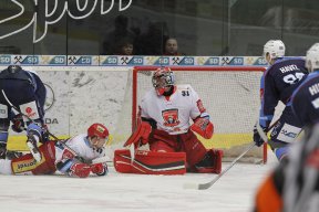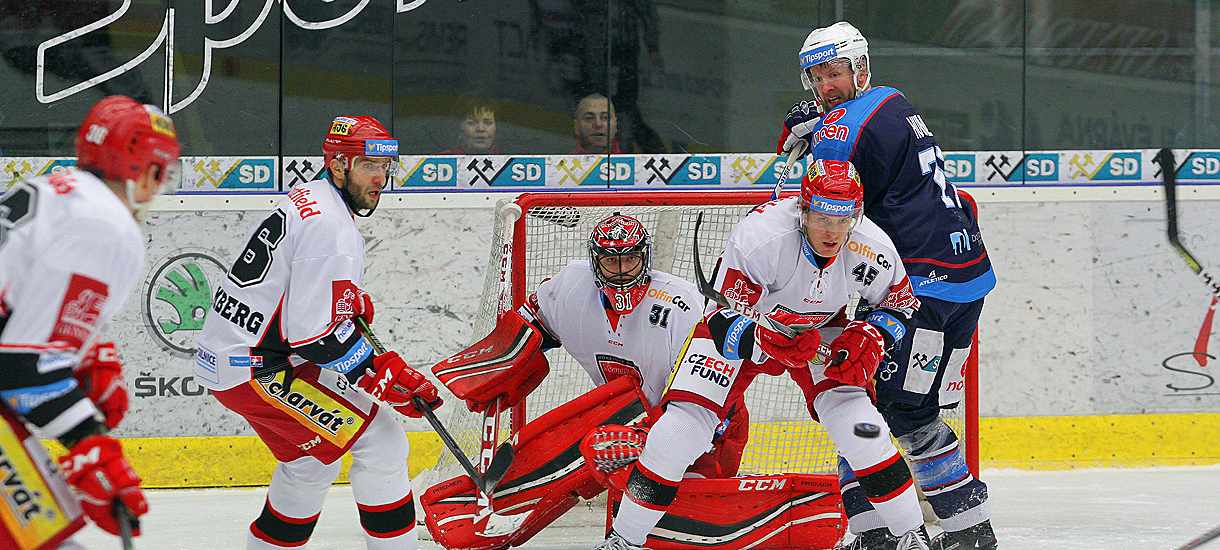 MHKV úvodu utkání se do dobré pozice dostal Petr Koblasa, který se sice zbavil obránce, ale poté neprostřelil královéhradeckého brankáře. Na druhé straně se do úniku dostal kapitán hostů Jaroslav Bednář, jenž však sám před Štěpánem Lukešem selhal a přestřelil. V dalším průběhu se hrálo bez větších šancí až do patnácté minuty, kdy střelu Tomáše Slováka vychytal Jaroslav Pavelka. V závěru si Chomutovští vytvořili značný tlak, jež ale nepřetavili v gól, přestože se Petr Koblasa proháčkoval až před bránu.