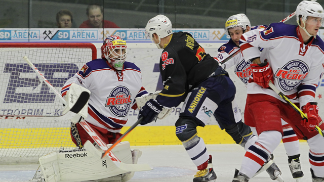 V úvodu třetího dějství všem vyznavačům chomutovských barev pořádně zatrnulo, když po střele z ostrého úhlu udržel gólman Strmeň puk jen tak tak před brankovou čarou. Brodský soubor držel se Severočechy krok a pokoušel se ze všech sil vyrovnat, ale v 53. minutě se dopustil chyby a podražený Marek Sikora v samostatném úniku se rozjel k trestnému střílení. Zkušený forvard nabídnutou šancí nepohrdl, když si rozhýbal gólmana Polívku a zblízka zasunul podél jeho levého betonu kotouč do sítě. A s Rebely to mohlo vypadat ještě hůř, ale to by musel David Květoň na konci krásné kombinace trefit odkrytou bránu. Domácím nepomohla ke zdramatizování zápasu ani závěrečná hra bez brankáře a Piráti tak slavili důležité tři body.