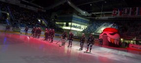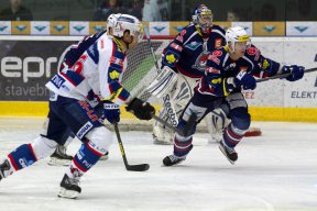 Z tlaku se ovšem červenobílí hráči oklepali a dokázali se i prosadit. Po nedůsledném bránění se ke kotouči dostal Radoslav Tybor a dobrým blafákem překonal Kostúra. Hosté byli hodně aktivní a dokonce se jim povedlo vsítit branku po chybě domácího brankáře, ale nemohla být uznána kvůli ofsajdu.