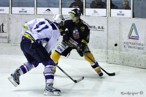 Převahu Chomutova ještě posílily dvě přesilové hry těsně za sebou a tak se k prvnímu výraznějšímu ohrožení domácího gólmana dostali černožlutí až v polovině třetiny. O chvíli později střílel z prostoru mezi kruhy Gerhát a i tuto střelu Hylák – i když s problémy – ustál. Na střelu Černého, který dostal ve 36. minutě puk do jízdy, už byl ale krátký.