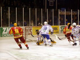 Do závěrečné části hry šli domácí s jasným cílem - vyrovnat. V úvodu musel Chomutov ustát oslabení a pak ještě čelil nájezdu Cmunta, Podolka byl ale na místě a tak domácí mohli útočit. Jenže Dukla toto výboně využívala, šanci Finka skvěle zneškodnil znovu Podolka. Na druhé straně pálil Stoklásek jen do Suchanovo hrudi. Následně byl za držení vyloučen Punčochář a Chomutov hrál přesilovku. V té chybělo málo k tomu, aby Boušek po přihrávce vyrovnal, ale puk neposedně poskakoval. Když se v početní výhodě neprosadili domácí, dostali výhodu jednoho muže v poli hosté. Jenže v oslabení ujížděl Kostourek, který byl podražen vyjíždějícím Suchanem a rozhodčí Florian zkřížil ruce nad hlavou a nabídl tak Kostourkovi trestné střílení. Nadějný chomutovský útočník se v husté atmosféře dokázal prosadit a bekhendovým blafákem snížil na rozdíl jediné branky - 1:2. Jenže Jihlava i nadále hrála s přehledem a tak se musel několikrát znovu vyznamenat Podolka. Na druhé straně zkusili domácí skoro dvě minuty před koncem power-play. V té měl velkou šanci na vyrovnání Charousek, ale puk ho v té chvíli neposlechl. Osm vteřin před koncem mohl ještě vyrovnat Boušek, ale puk mu přeskočil hokejku a tak bylo jasné, že Dukla se ujímá vedení v sérii.