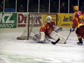 JIHOd úvodního buly bylo na hráčích vidět, že Chomutov má v nohou o dva zápasy více než soupeř. V první šanci se hned v 1. minutě objevil Bakus, ale jeho rána šla mimo Podolkovu svatyni. V 5. minutě už Jihlavští poprvé zvedali hokejky nad své hlavy, branku vstřelil Čachotský, ale rozhodčí Florian ji pro postavení útočícího hráče v brankovišti neuznal. O minutu později hráli domácí přesilovou hru, během níž zavřeli Duklu ve vlastním pásmu, ale kýžený efekt v podobě vstřelné branky to nepřineslo. Na konci 11. minuty se Jihlava dostala do přečíslení tří proti dvěma, ale radost překazil Cmuntovi brankář Podolka. V polovině 13. minuty se ale hosté již radovali, během přesilové hry využil svého důrazu Padělek - 0:1. O pár okamžiků později se před Suchanem zkoušel prosadit Polodna, ale bezúspěšně. A tak se v 17. minutě znovu radovala Dukla, když Kuchyňova dělovka prosvištěla kolem Podolky až do sítě - 0:2. Domácí sice reklamovali postavení mimo hru, ale rozhodčí byli nekompromisní a branku uznali. V závěru třetiny byl ještě vyloučen Duben za vražení na hrazení a ke dvouminutovému trestu obdržel ještě deset minut navíc.