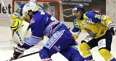Jako první si vzal v prostřední části slovo Hruška. Směle probruslil útočným pásmem, objel branku a ještě stihl vyslat nebezpečný bekhend mezi Salfického tyče. Domácí ale včas celou situaci pokryli. Hosté jim navíc opakovaně znesnadňovali pohyb kupředu rychlým přístupem, což vedlo k mnohým nepřesnostem a častým přerušením. To svědčilo spíše Chomutovským, kteří stále více mysleli na útok. Největší naději na úspěch zřejmě měl Hašek, ale jeho rána vzala za své v Salfického rozkleku. Tlak hostů paradoxně otevřel vrátka na druhou stranu kluziště, kudy se prosmýkl Janků, dokázal si vyměnit puk s Alinčem a ještě ho lehkým obloučkem usměrnit do branky. Chábera stihl zasáhnout. Ubráněný únik vrhl hosty znovu k dobývání lví branky. Duda vybojoval puk u hrazení, poslal jej před bránu, kde ho z první trefil Pulpán. Proti němu zvládl Salfický ještě zasáhnout, ale na dorážku Jeslínka už byl krátký – 1:1. Vyrovnaný stav zase pro změnu přiměl k aktivitě domácí, výsledkem byla slibná teč Pajiče, která ovšem jen těsně minula branku. Alinč zase zkusil štěstí z úhlu, a dokonce nastřelil tyč, od níž se pak puk odrazil do Chábery. Chomutovský gólman jej dokázal podržet. Ale ne na dlouho. Pajič vyhrál vhazování, toho využil ke střele Heinisch a dorážka Hovorky už našla cestu do sítě – 2:1. Další gól přinesl další změnu v obrazu hry. Přelévání útoků ze strany na stranu. V jedné takové zteči si Němeček sám dovolil zastavit protihráče, obrat jej o puk a sám vyrazit do útoku, jeho střela ovšem našla jen připraveného brankáře. Na druhé straně se podobně vedlo Haškovi, nápřah z levého kruhu se roztříštil o Salfického. V závěru se týmy vrátily k opatrnosti a nepřesnostem, druhá třetina tedy skončila 2:1.