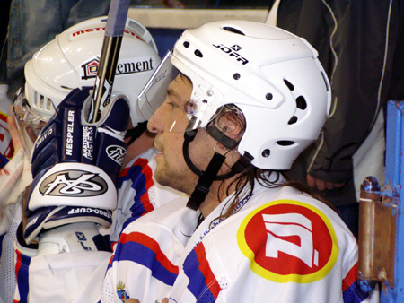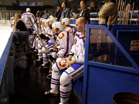 BERUtkání začalo ve vysokém tempu a hned v první minutě prověřil Jarinu dělovkou od modré Ševc, ale domácí gólman se nenechal nachytat. O dvě minuty později našla Noskova křižná přihrávka přes střední pásmo najíždějícího Koláčka, ale jeho golfový projektil utlumila výstroj berounského brankáře Kopřivy. Po závaru před brankou hostí, který zařídil Šípův útok, se utrhl druhý muž kanadského bodování Eiselt, proháčkoval se mezi domácí obranou a když bylo skoro jasné, ža padne první branka, na scénu přišel Kamil Jarina, který zákrokem ala Dominátor tuto záludnou střelu zneškodnil. Hned z protiútoku se naskytla obrovská příležitost domácím otevřít skóre, když se brankář Kopřiva srazil s obráncem, kotouč se dostal k Pavlu Malečkovi, který ho zpracoval a vyslal ho zpět na prázdnou bránu , ale hokejový osud tomu nepřál, a tak se kotouč odrazil od horní tyčky Kopřivovi brány. O minutu později se ze stejného místa pokusil propálit hostující obranu Revay, jeho střela sice minula branku, ale poblíž stál všudybyl Jíra, který z těžké pozice dokázal dotlačit kotouč do brány a rozpoutat tak výbuch nadšení domácích fanoušků - 1:0. Po inkasované brance se Medvědi snažili co nejrychleji odpovědět, ale chomutovská obrana a především skvělý Kamil Jarina odrážel všechny pokusy. Půl minuty před koncem první třetiny měl velkou příležitost zvýšit Maleček, ale nedokázal zvednout bekhendovou střelu nad Kopřivovi betony a tak se šlo do kabin za stavu 1:0.